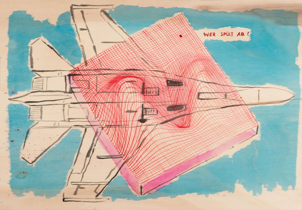Abspülen, 2017, 42 × 59,5 cm, Tusche auf Pappelsperrholz, Courtesy Galerie EIGEN + ART Leipzig/Berlin, Foto: Uwe Walter, Berlin, © VG Bild-Kunst, Bonn 2025