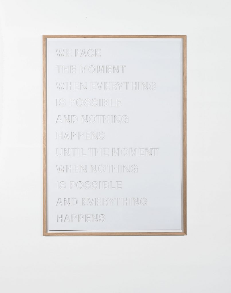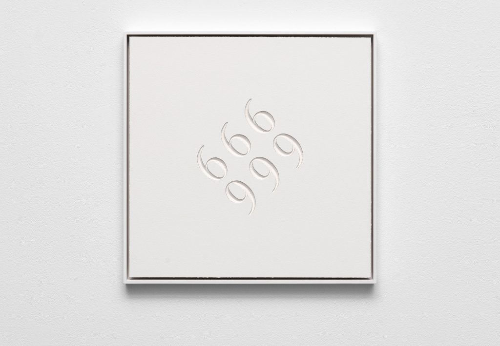The Devil, You and Me, 2021, Inschrift in Gipskarton (Unikat), 47,2 x 47,2 x 3,5 cm (gerahmt), Foto: dotgain.info